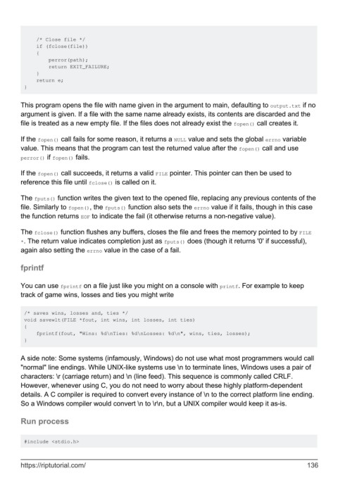file. Similarly to fopen(), the fputs() function also sets the errno value if it fails, though in this case