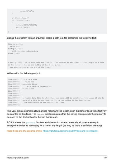 be counted as two lines. The fgets() function requires that the calling code provide the memory to