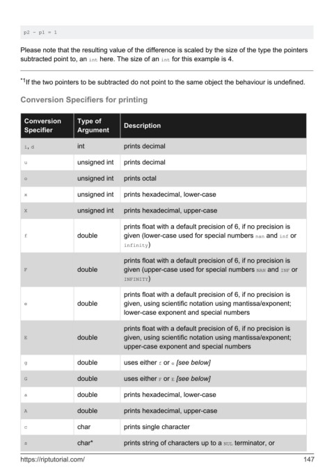 Conversion Specifiers for printing