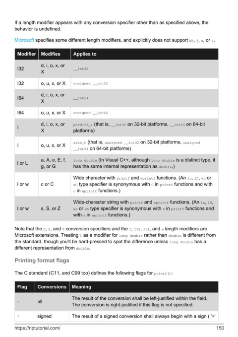If a length modifier appears with any conversion specifier other than as specified above, the