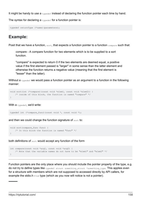 Without a typedef we would pass a function pointer as an argument to a function in the following
