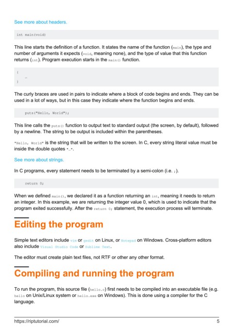 To run the program, this source file (hello.c) first needs to be compiled into an executable file (e.g.
