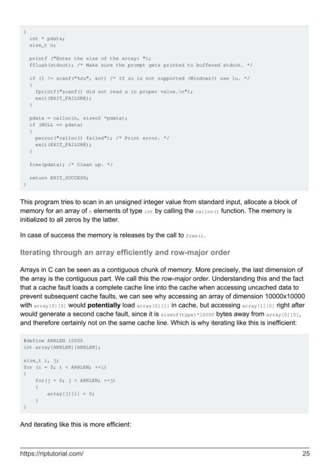 memory for an array of n elements of type int by calling the calloc() function. The memory is