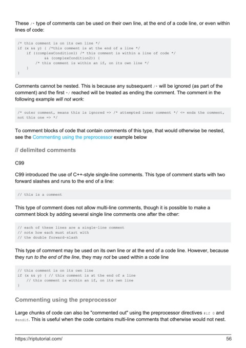 Large chunks of code can also be "commented out" using the preprocessor directives #if 0 and