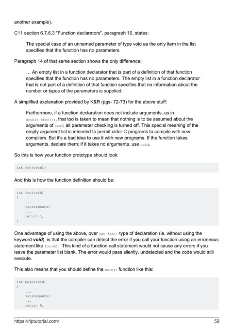 keyword void), is that the compiler can detect the error if you call your function using an erroneous