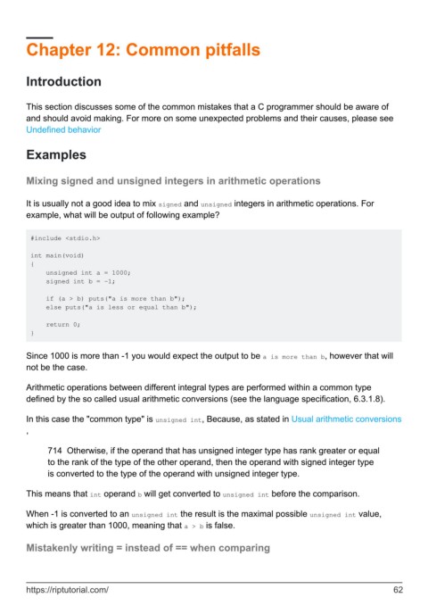This section discusses some of the common mistakes that a C programmer should be aware of